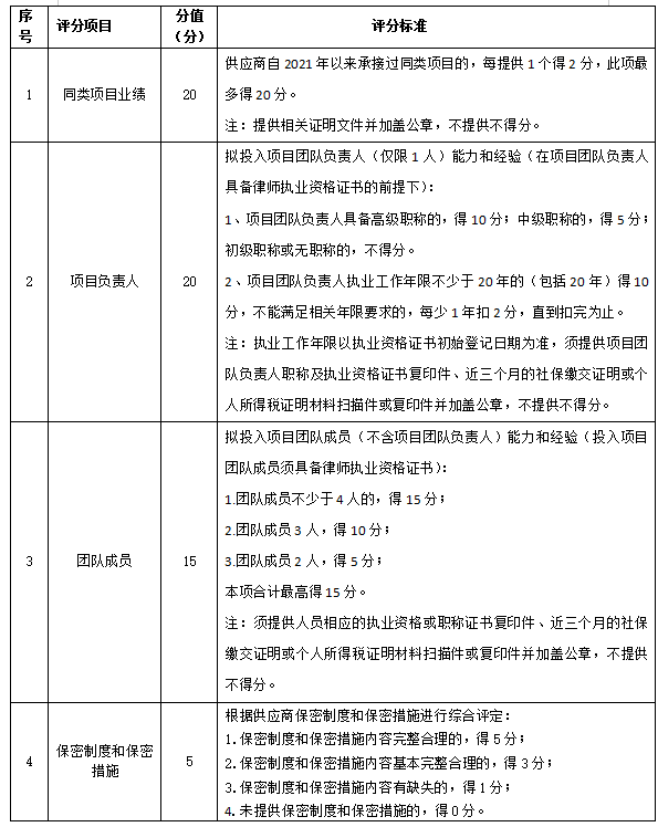 (1)响应文件内所附相关证明材料必须真实可信,若未提供相关资料,相关单项得0分。